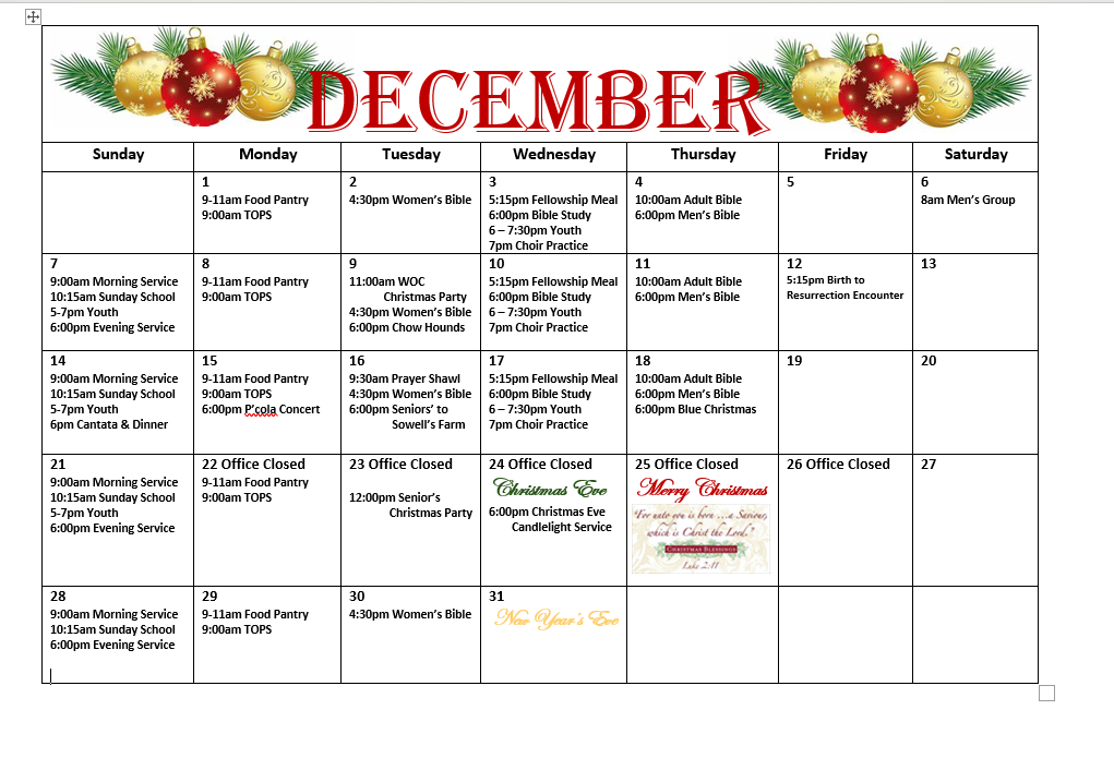 Calendar of Events